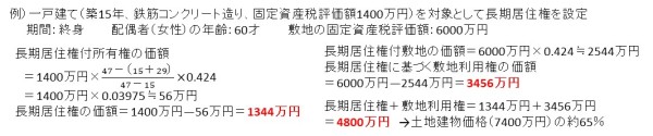 分数の部分がマイナスになるときは、配偶者居住権付所有権の評価は0円です。一戸建て住宅のばあい、建物が古く、評価が0円でも土地の評価を減らせるので、現金預金を受け取れる額を増加させることができます。